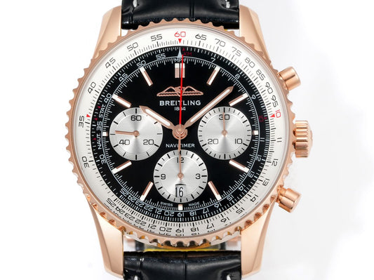 Chronograph - Rosegold bezel - Panda fece - N-Timer - Black Leather - Automatic - 43mm