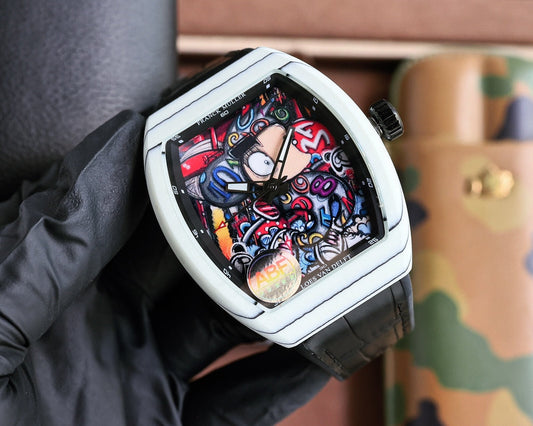 Rhinestone White 316L Steel - Grey Leather - Automatic - 47*40mm