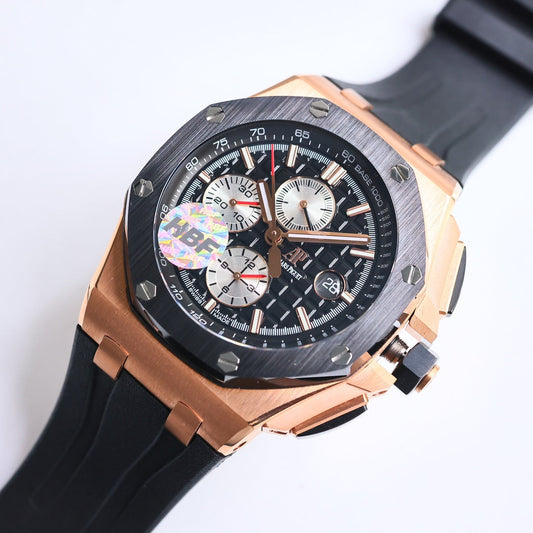 TOP! Rosegold - Hollow 904L Steel - Black Rubber - Automatic - 42mm