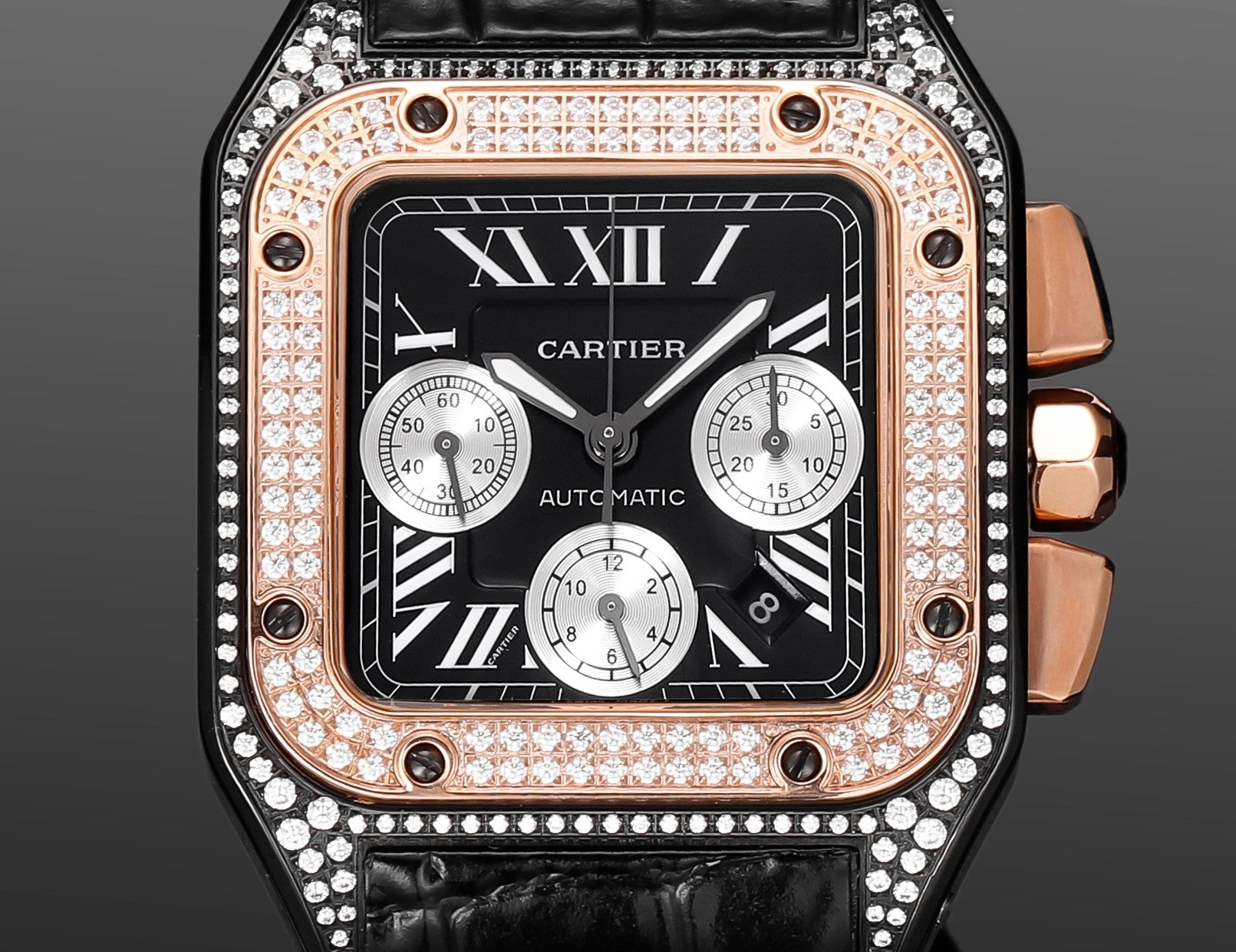 Chronograph -Rhinestone White 316L Steel - Black Leather - Automatic - 42mm