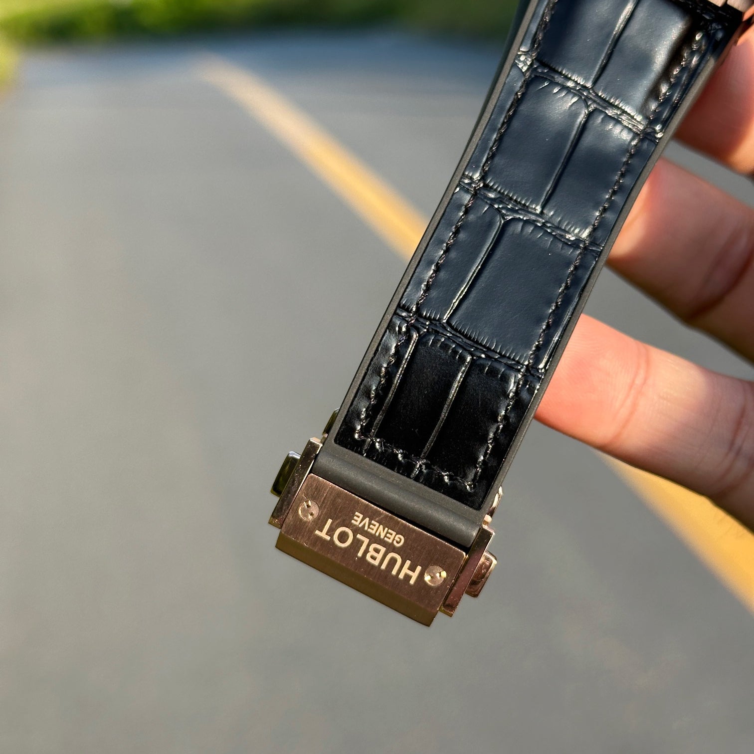 Chronograph -Rosegold Black - Black Leather - Automatic - 45mm