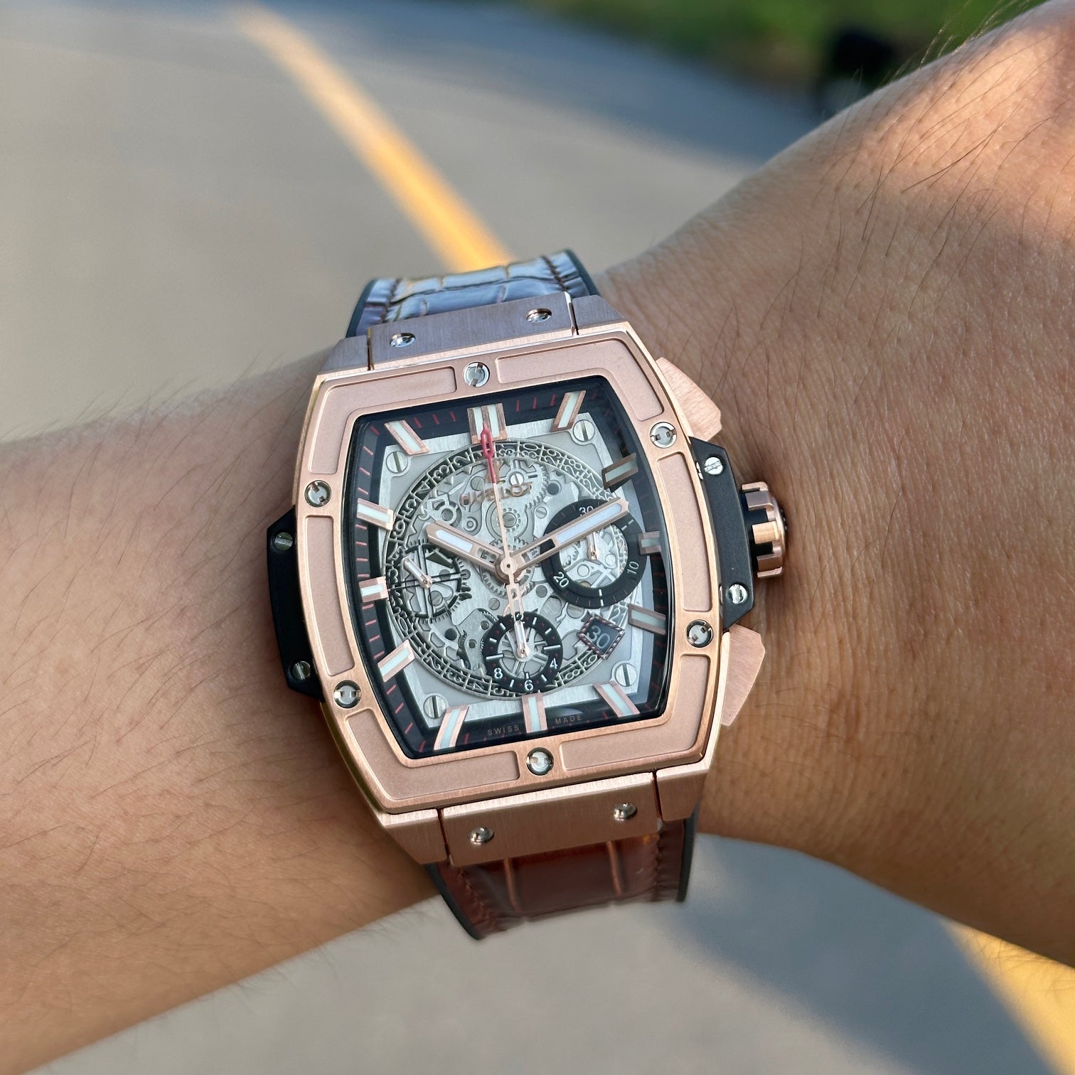 Chronograph -Rosegold Black - Brown Leather - Automatic - 45mm