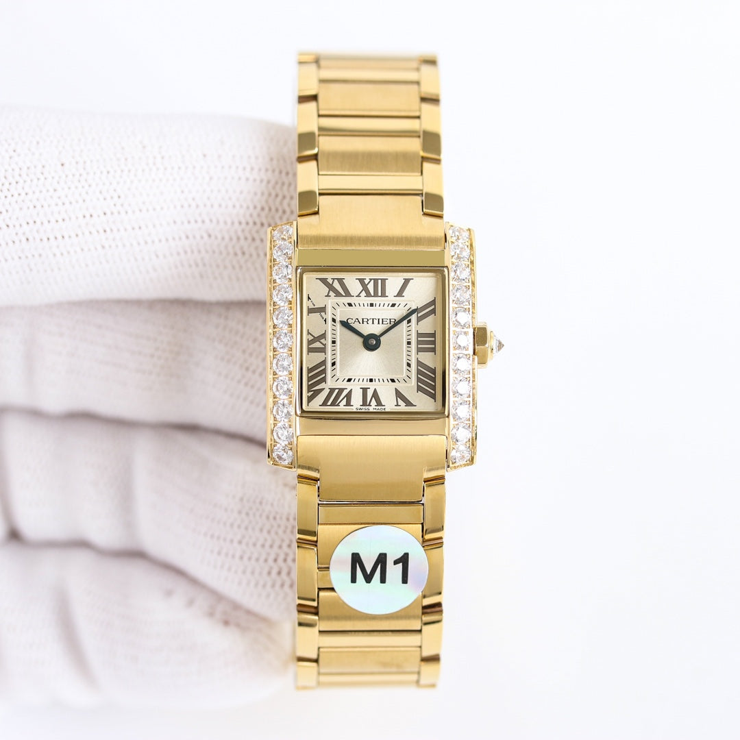 LADY- Bracelets & Mini Watch- Diamond Bezel -Yellowgold - 904L Steel- Quartz -21*25mm