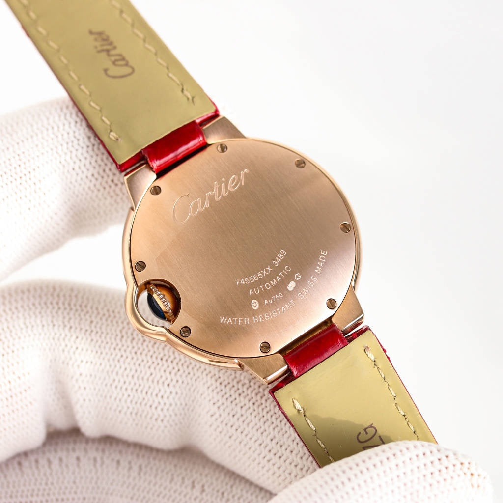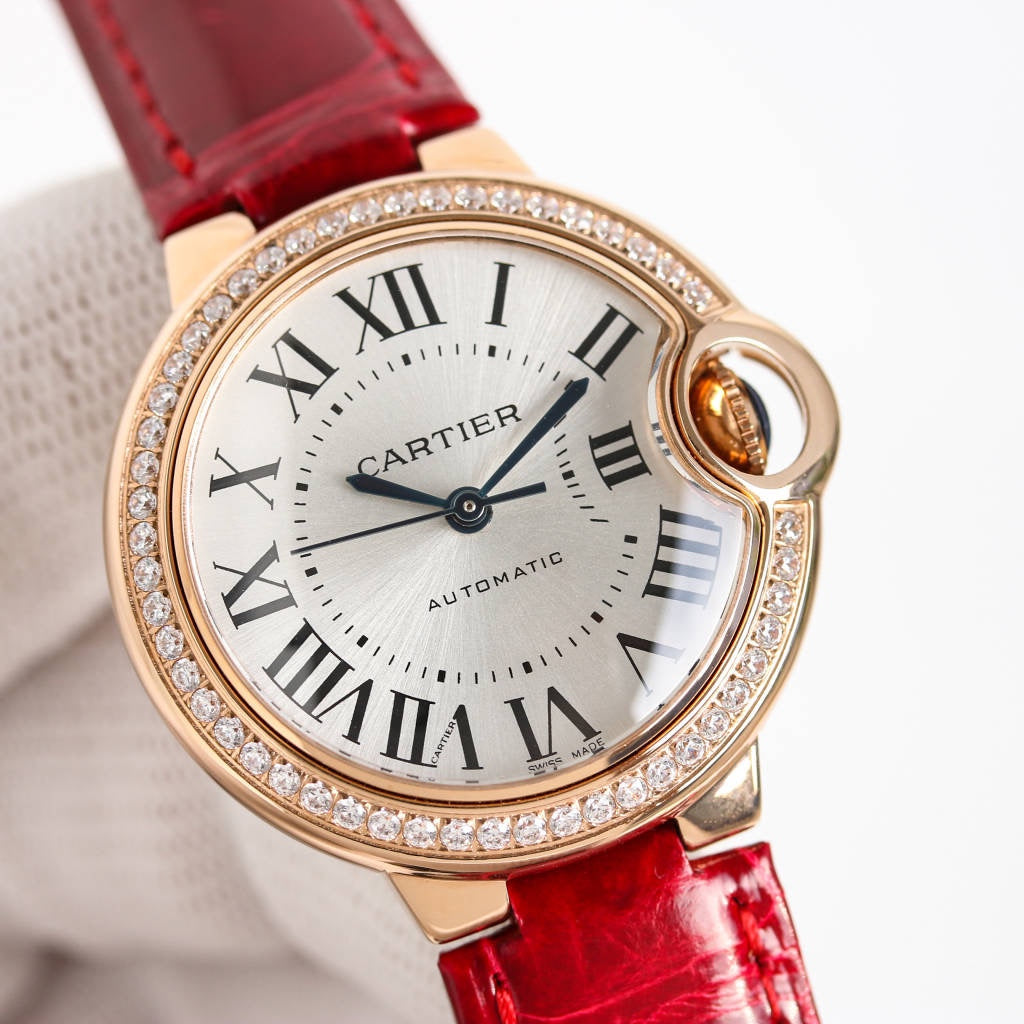 LADY -Silver 316L Steel - Red Leather - Automatic - 33mm