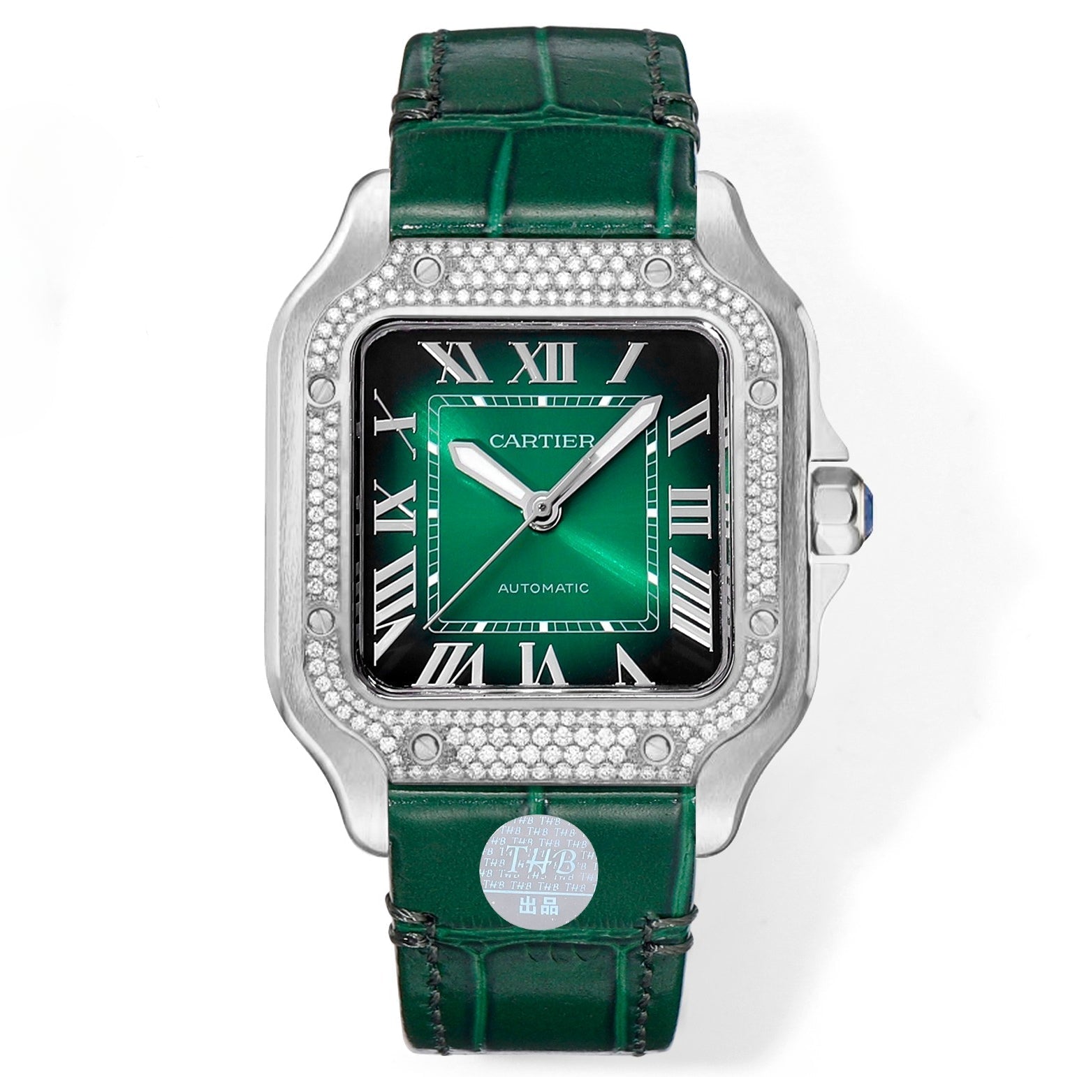 Rhinestone Green 316L Steel - Green Leather - Automatic - 47*40mm