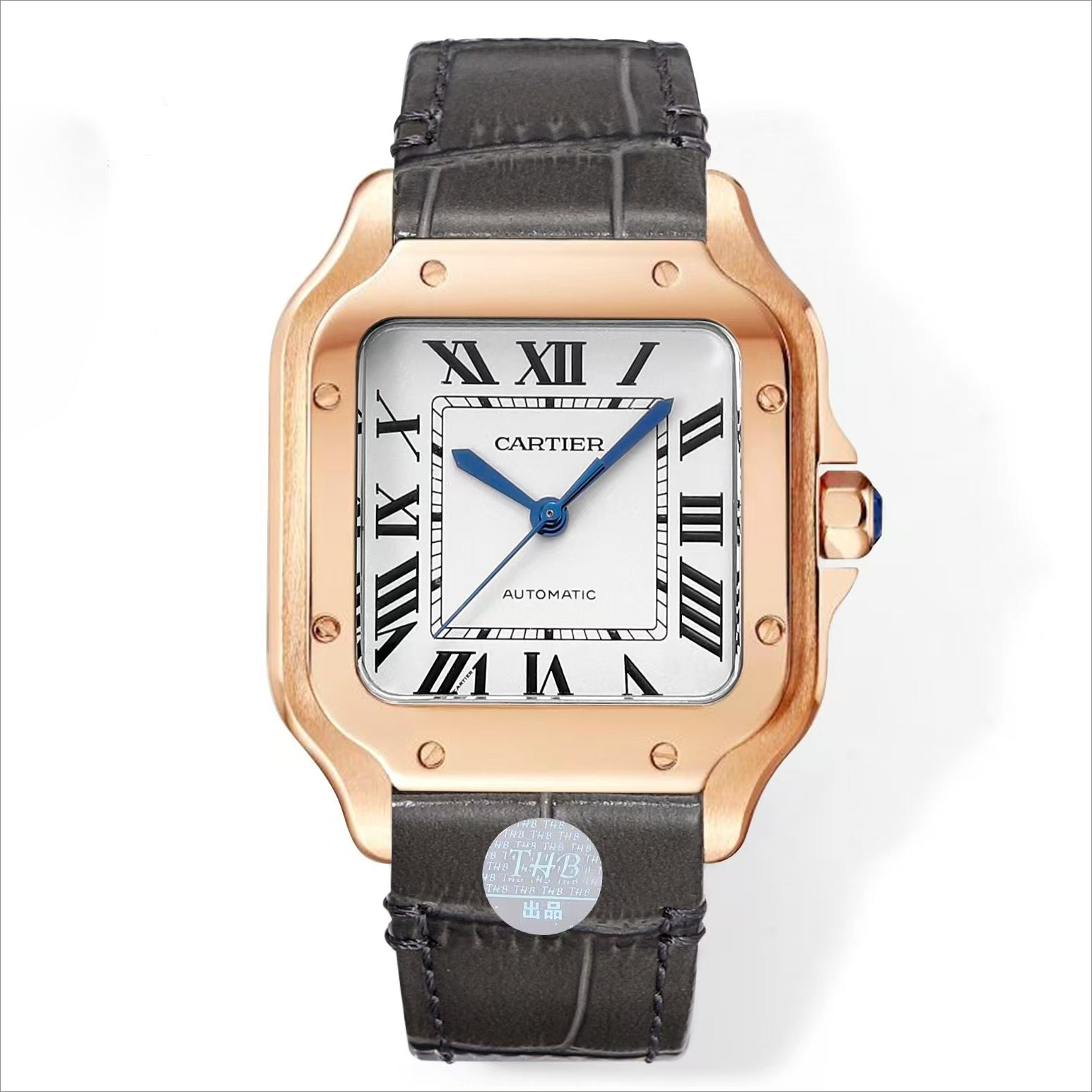 White Rosegold 316L Steel - Grey Leather - Automatic - 47*40mm